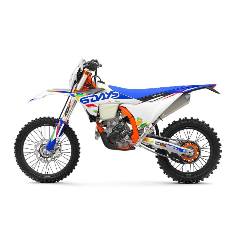 Lláma o Contacta con nosotros y te ofreceremos la mejor oferta del mercado para la moto 250 EXC-F 2026 6Days - Moto KTM Enduro.Puede que la KTM 250 EXC-F 6DAYS tenga el motor más pequeño de la gama de 4 tiempos de KTM, pero no es nada del otro mundo cuando se trata de golpear fuerte. Una parte ciclo ligera, un límite de revoluciones de locura y una manejabilidad que inspira confianza la convierten en una auténtica heroína del enduro. Basta con echar un vistazo a su impresionante palmarés -y a sus igualmente impresionantes registros de ventas- para darse cuenta de que la KTM 250 EXC-F 6DAYS va en serio.