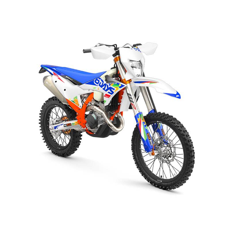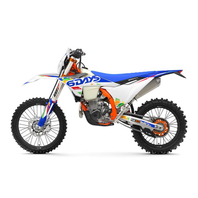Lláma o Contacta con nosotros y te ofreceremos la mejor oferta del mercado para la moto 500 EXC-F 2026 6Days - Moto KTM Enduro.Pocas máquinas pueden competir con la KTM 500 EXC-F 6DAYS. Potencia, par motor, comportamiento inigualable y pura furia 4 tiempos, sitúan a esta arma del Enduro en una categoría propia. La KTM 500 EXC-F 6DAYS, con su potente suspensión de cartucho cerrado y un paquete electrónico que avergüenza a sus rivales, está preparada para afrontar cualquier reto.