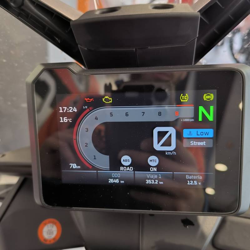 - Freno delantero: 2 pinzas de 4 pistones montadas radialmente