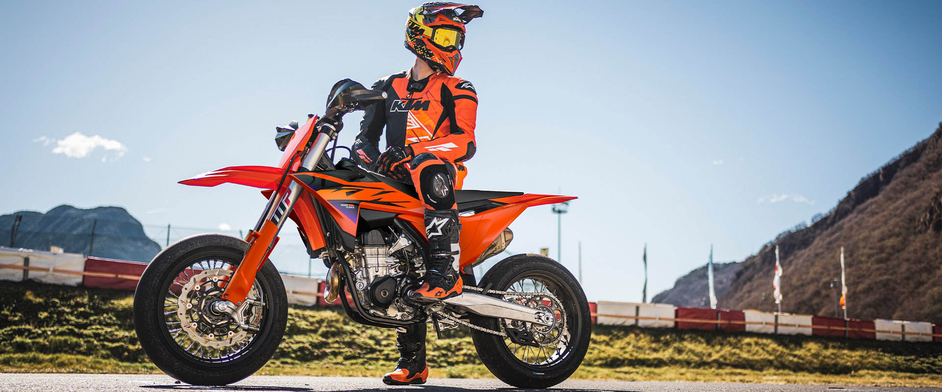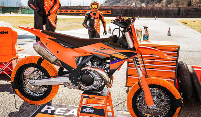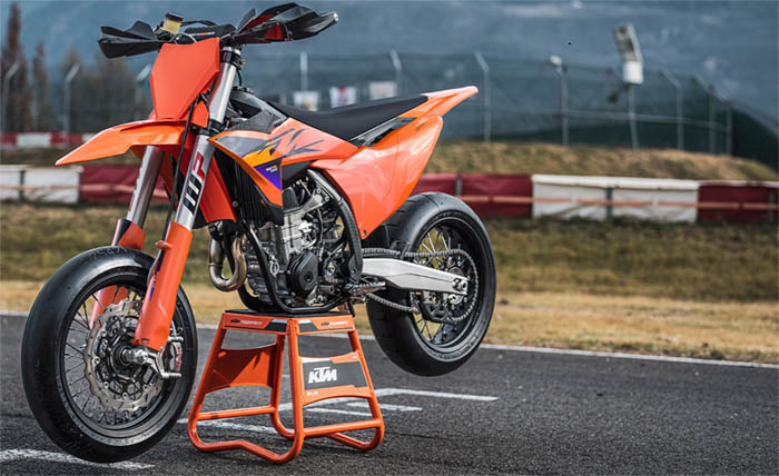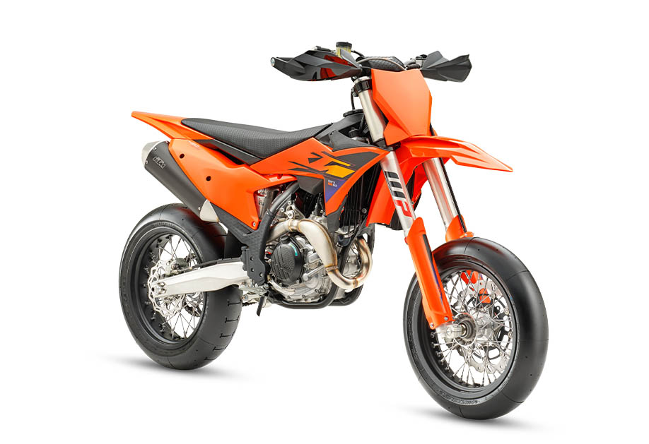 La KTM 450 SMR representa la única forma real de deporte motociclista en todos los sentidos. Tomando las mejores características de la ganadora de campeonatos KTM 450 SX-F y añadiendo más prestaciones para el asfalto, como neumáticos slick de competición, potentes frenos y unas suspensiones de primera. En pocas palabras, es una moto READY TO RACE en estado puro.